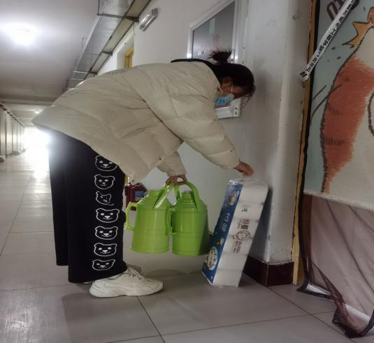 为了让隔离寝室的同学“衣食无忧”,员工党员们主动担起责任为隔离寝室送隔离餐。他们用自己的行动诠释了“隔离不隔爱,暖人更暖心”的含义。