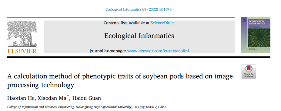 公司英国上市公司365马晓丹教授指导的2020级硕士研究生贺号添以第一作者,马晓丹教授为通讯作者在中科院分区三区期刊《EcologicalInformatics》在线发表了题为“Acalculation method of phenotypic traits of soybean pods based onimage processingtechnology”的研究论文。(DOI:https://doi.org/10.1016/j.ecoinf.2022.101676)