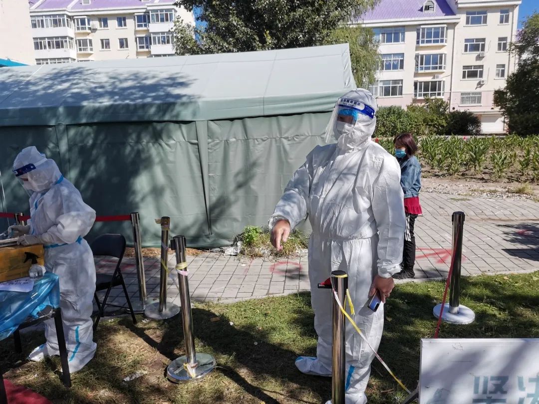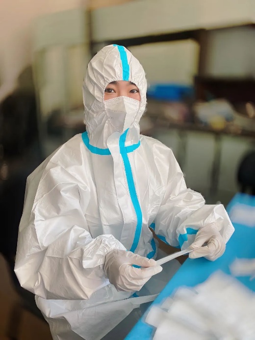 20级农业工程与信息技术研究生高嘉欣在社区担任疫情防控志愿者负责核酸采样