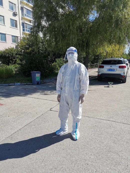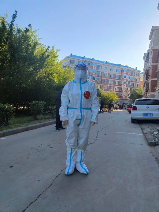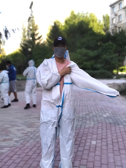 实验员王亚民在担任疫情防控志愿者