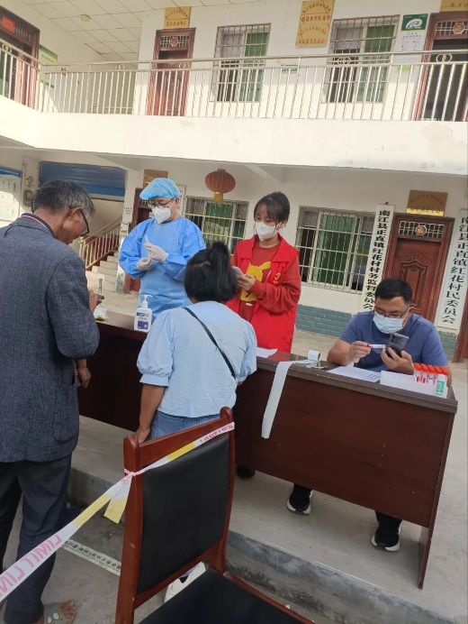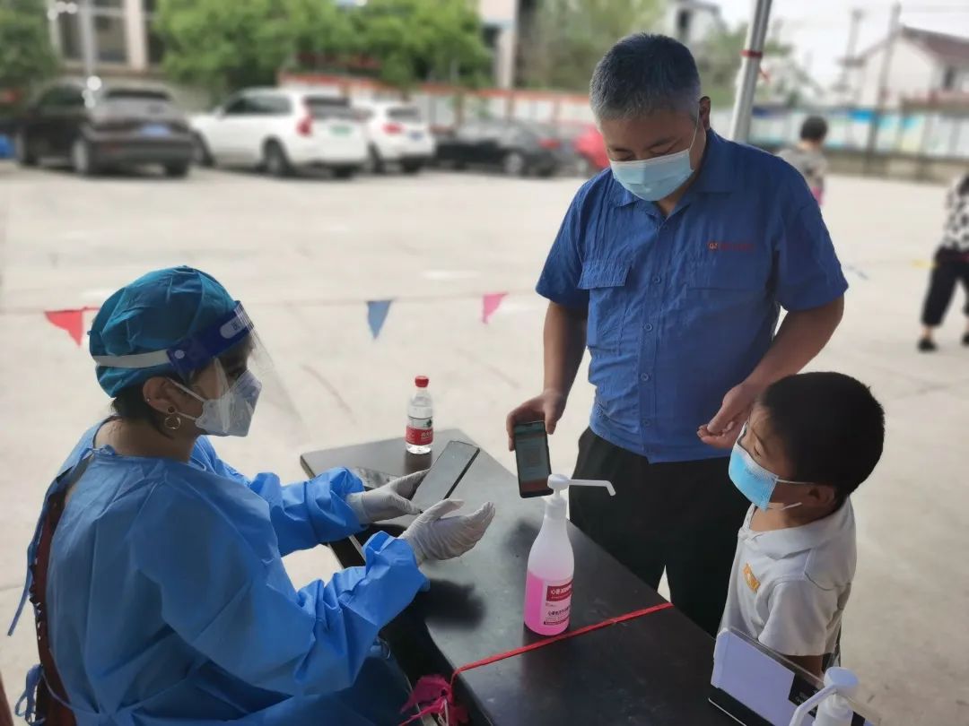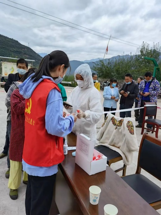 20级通信1班何巧红在社区担任疫情防控志愿者为核酸采样群众扫码
