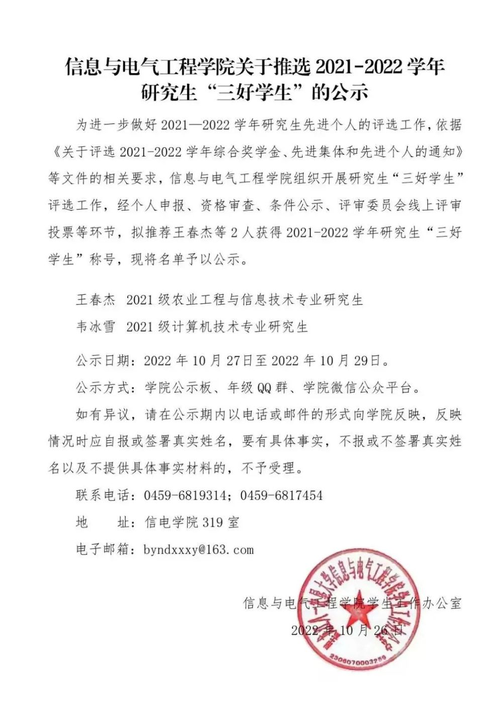 公司关于2021-2022学年研究生“三好员工”的公示