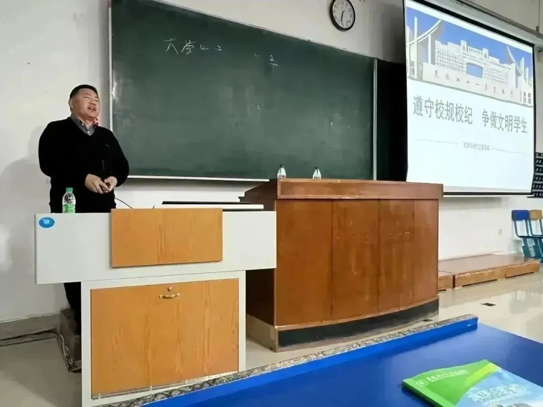 刘传明书记面向2022级本科生做《遵守校规校纪 争做文明员工》主题讲座。以案例分析的方式,向同学们讲解了《本科生手册》中的关于日常行为规范、考风考纪遵守、课堂出勤管理等方面的相关规定,并对大家的老员工活提出了殷切希望。