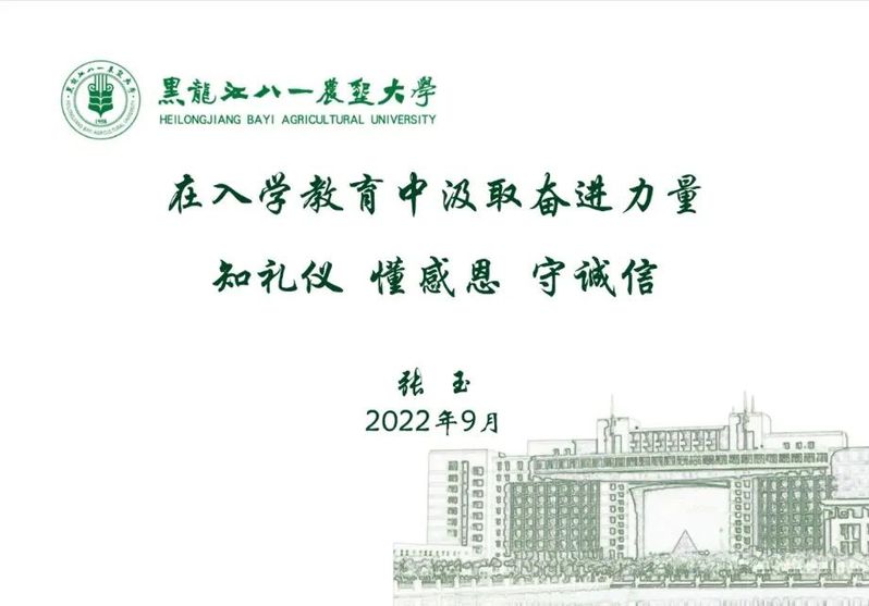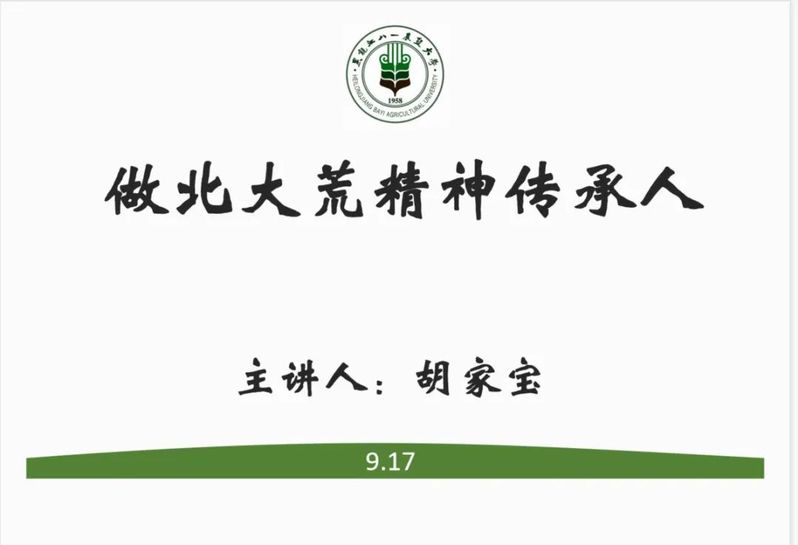 辅导员胡家宝从北大荒历史、北大荒精神和八一农大精神入手,希望大家要做好北大荒精神的传承人。基于此,对同学们在校日常学习、生活等方面提出相关要求。