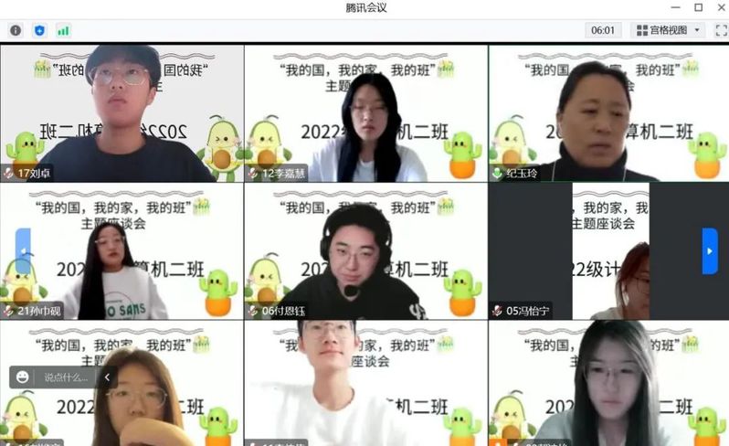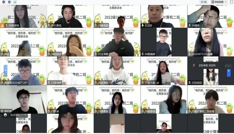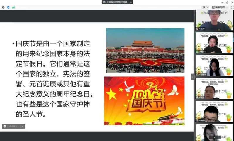 10月8日,2022级计算机(2)班线上举行了“我的国 我的班 我的家”主题座谈会。班主任纪玉玲和全班同学参加会议,座谈会由付恩钰同学主持。