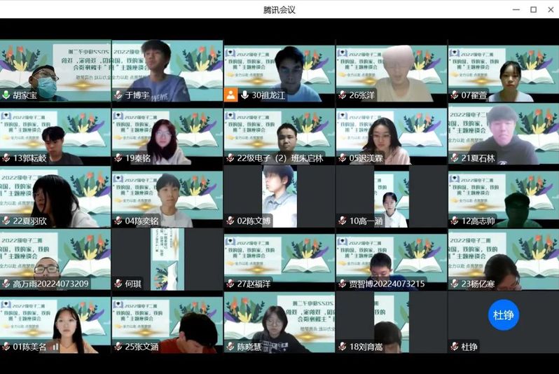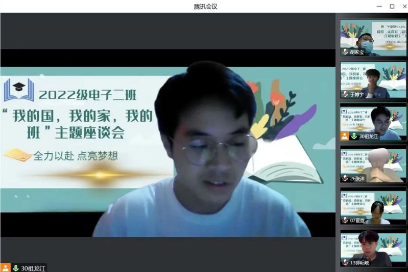 10月3日,2022级电子(2)班线上举办了“我的国 我的班 我的家”主题座谈会。班主任胡家宝和全班同学参加会议,座谈会由祖龙江同学主持 。