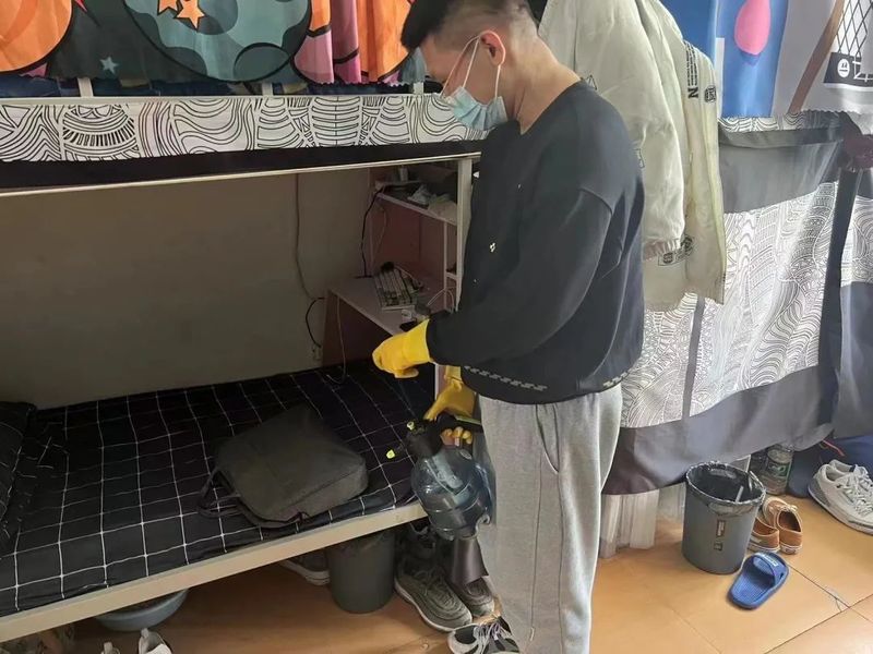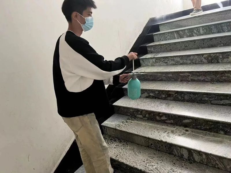4月20日,信电学院员工组织开展“我为群众办实事”活动,活动由辅导员秦智老师带队,老师和同学们为1号和12号寝室楼进行了全面消杀。