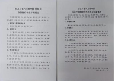 信息与电气工程学高度重视暑期员工留校管理和疫情防控安全工作,确保将各项疫情防控政策和安全教育落实到位、落到实处。