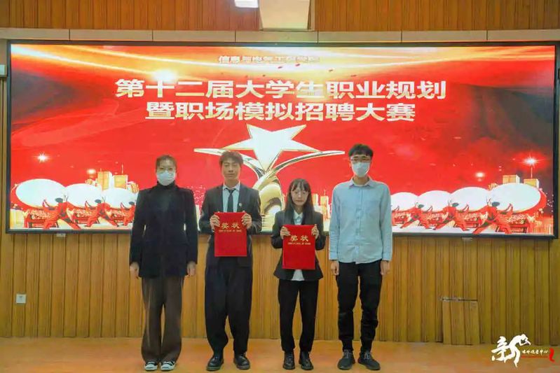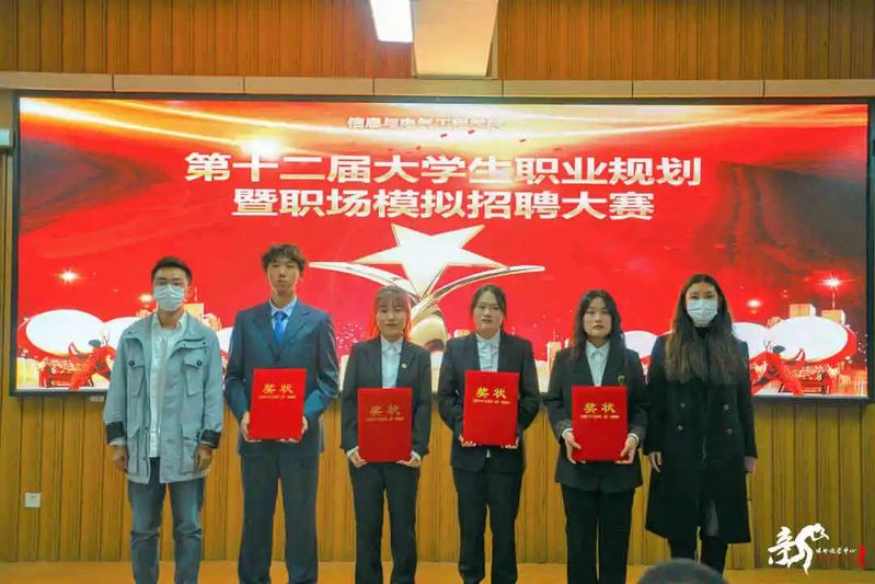 选手们前期做了大量的准备,了解目标行业的发展现状及前景。职业目标的选择和路径的设计符合外部环境和个人特质。评委老师作为HR进行模拟问答。整个过程紧张有序,参赛同学们的作品思路清晰、详略得当、重点突出。他们以清晰的思维逻辑,独具特色的演讲风格吸引了在场的评委老师以及观众的兴趣。评委结合选手的展示,从职业目标的合理性、职业路径分析、人职匹配度、职业现状数据准确性、评估调整方向与目标职业契合度等方面进行了压力面试。根据职业规划书(50分)及现场表现(50分)的原则为选手进行打分,最终确定获奖名单为: