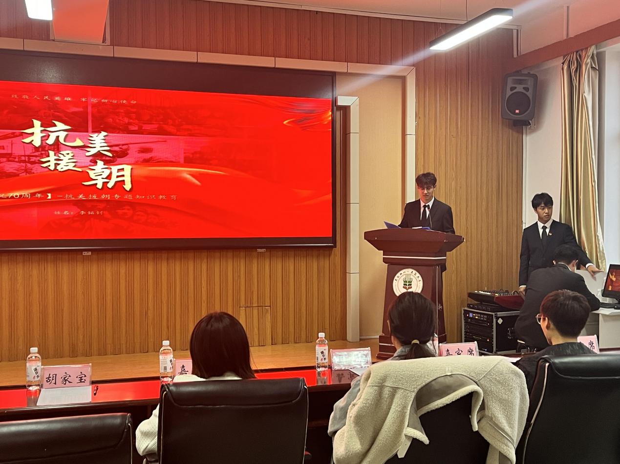 为纪念抗美援朝73周年,引导公司员工回顾革命历史,牢记青春使命,信电学院于10月31日在信息馆313会议室开展了“纪念抗美援朝,铭记英雄荣光”红心向党青年宣讲团专场宣讲比赛,来自信电学院“红心向党”青年宣讲团的14名同学以纪念抗美援朝为主题进行了精彩的演讲。本次活动邀请了校社团联合会理事长张镜骐、副理事长关静文及工程、经管、食品、人文等兄弟学院社团联合会理事长担任评委。