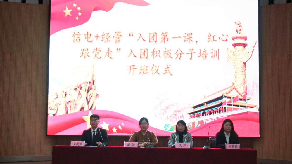 以坚定青年理想信念为主线,开展青年宣讲员培训选拔工作。2024年,是中国共产主义青年团成立102周年,这102年,也是全中国团员青年肩负使命、共商未来的重要百年。2024年3月以来,信电学院依托“红心向党”青年宣讲团,开展了面向全院青年的宣讲员选拔与培训工作。经过了一系列的选拔培训,最终有15名团员青年成功获聘为信电学院“红心向党”青年宣讲团讲师,他们走进班级、走进支部、走进社团开展一系列的红色宣讲,用青年的声音引领带动广大青年,鼓舞大家肩负重任、继往开来。3月24日,信电学院联合经管学院共同举办“入团第一课、红心跟党走”入团积极分子培训,来自两个学院共计200余名积极分子参与本次培训,15位青年宣讲员用青年之声引领青年思想成长。