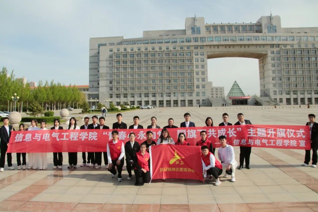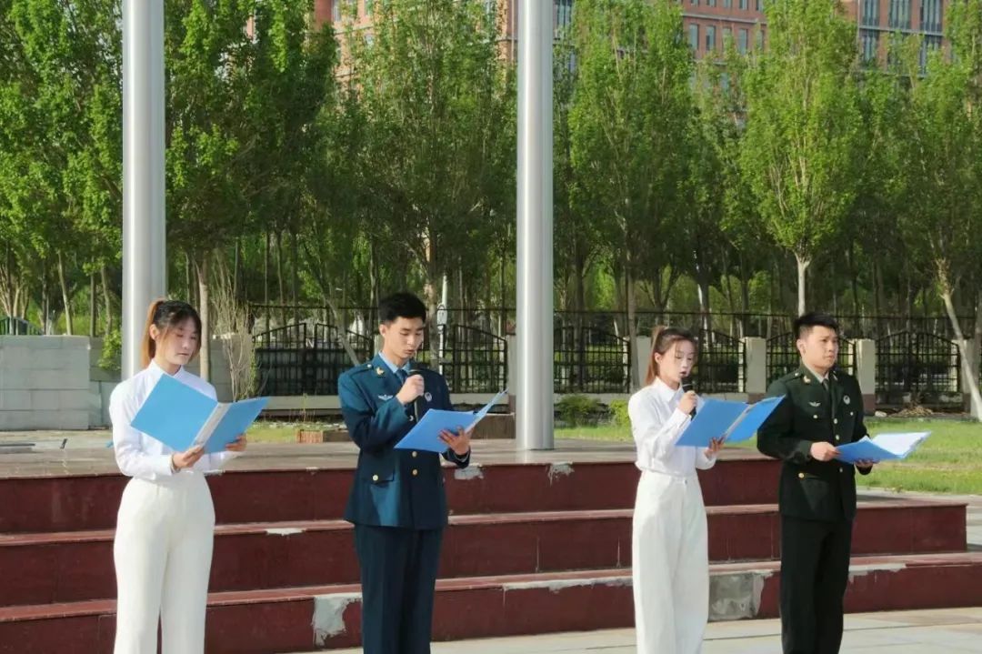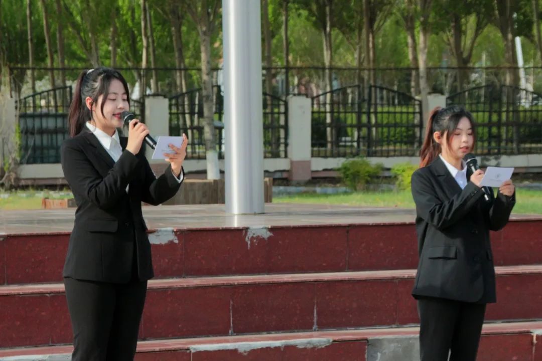 伴随着清晨第一缕阳光,信电学子齐聚国旗之下,怀着对祖国的无限热爱和崇高敬意。随着国旗护卫队队员的矫健步伐,鲜艳的五星红旗在雄壮的国歌声中冉冉升起。全体师生肃立,向国旗行注目礼。这一刻,历史的厚重和民族的骄傲伴随着国旗在晨曦中飘扬,象征着国家的繁荣与昌盛。随后,院员工代表李睿带领学院全体员工郑重宣誓,他们坚定表示要热爱祖国、努力学习,为实现中华民族的伟大复兴而努力奋斗。员工代表刘亦菲、李知涵、卢玮东、张嘉麟四位同学依次走上台前,在国旗下进行红色宣讲。王禹博和杜昕宇、贾济源和张嘉麟作为学院国家级红色精神宣讲志愿服务团队代表,为全体同学深情讲述了延安时期的艰苦岁月,讲述了中国共产党人如何在延安这片红色土地上孕育出伟大的延安精神,并号召信电学子们要继承和发扬这种精神,始终保持对党的忠诚和对人民的热爱。
