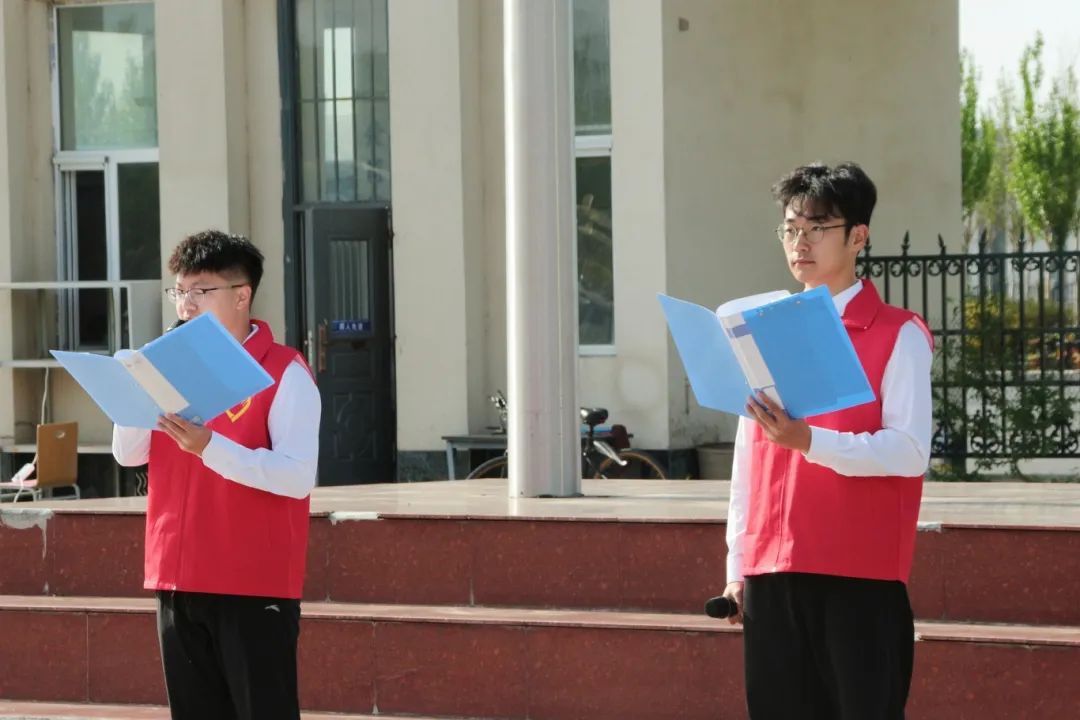 伴随着清晨第一缕阳光,信电学子齐聚国旗之下,怀着对祖国的无限热爱和崇高敬意。随着国旗护卫队队员的矫健步伐,鲜艳的五星红旗在雄壮的国歌声中冉冉升起。全体师生肃立,向国旗行注目礼。这一刻,历史的厚重和民族的骄傲伴随着国旗在晨曦中飘扬,象征着国家的繁荣与昌盛。随后,院员工代表李睿带领学院全体员工郑重宣誓,他们坚定表示要热爱祖国、努力学习,为实现中华民族的伟大复兴而努力奋斗。员工代表刘亦菲、李知涵、卢玮东、张嘉麟四位同学依次走上台前,在国旗下进行红色宣讲。王禹博和杜昕宇、贾济源和张嘉麟作为学院国家级红色精神宣讲志愿服务团队代表,为全体同学深情讲述了延安时期的艰苦岁月,讲述了中国共产党人如何在延安这片红色土地上孕育出伟大的延安精神,并号召信电学子们要继承和发扬这种精神,始终保持对党的忠诚和对人民的热爱。