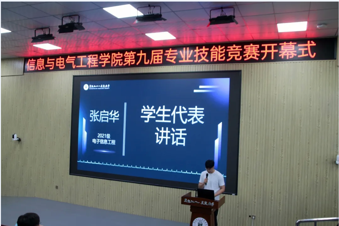 开幕式在员工代表张启华满是期待和祝福的发言中拉开帷幕。张启华作为学院科创代表,和师生们分享了自己的科创心得,汇报了自己在本年度“蓝桥杯”国赛中实现EDA项目0的突破的备赛经历。