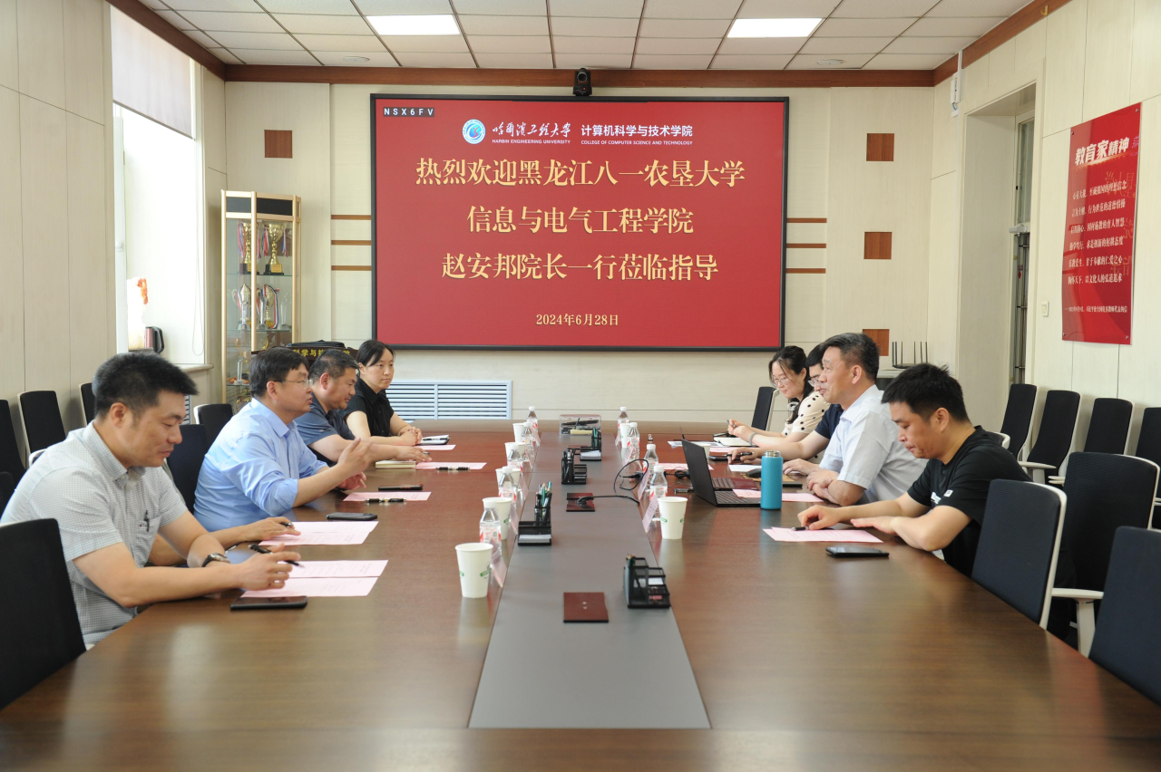 在走访调研过程中,哈尔滨工程大学信息与通信工程学院经理窦峥、计算机科学与技术公司党委书记刘冬、智能科学与工程学院经理赵玉新、水声工程学院经理乔钢等学院领导分别介绍了各自学院的历史沿革、办学特色、团队队伍建设、人才培养、科学研究、团队建设、国际交流等方面的工作和取得的成绩,分享了办学经验和发展特色。赵安邦经理对此行哈尔滨工程大学各学院提供此次宝贵的学习交流机会以及热情接待表示衷心的感谢,同时介绍了八一农大英国上市公司365发展情况。赵安邦表示,哈尔滨工程大学计算机通信信息类等学科有着显著的特色优势,一直是八一农大英国上市公司365学习发展的榜样。希望双方在教学、科研、社会服务、员工科创、实验室建设等方面寻找契合点和互补性,也希望八一农大英国上市公司365的发展能得到哈尔滨工程大学相关学院的支持和帮助,助力学院在人才培养、团队建设、科研服务等方面稳步高质量提升。在座谈中,双方还就农场大田信息采集、农田图像处理、网络信息安全、涉农智能控制、智慧农场技术等方面科学研究达成了合作意向,积极为龙江数字农业发展做出应有的贡献。