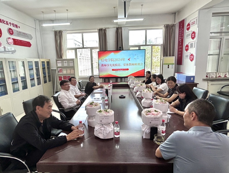 2024年9月9日,信电学院召开了教师节先优模范荣休教师座谈会,学院领导及相关教师参加了此次会议。此次座谈会旨在向长期为学院教育事业作出贡献的荣休教师致谢,同时,向教师节期间获得学校及大庆市表彰的优秀教师和先进工作者表示祝贺。
