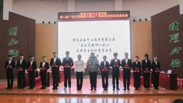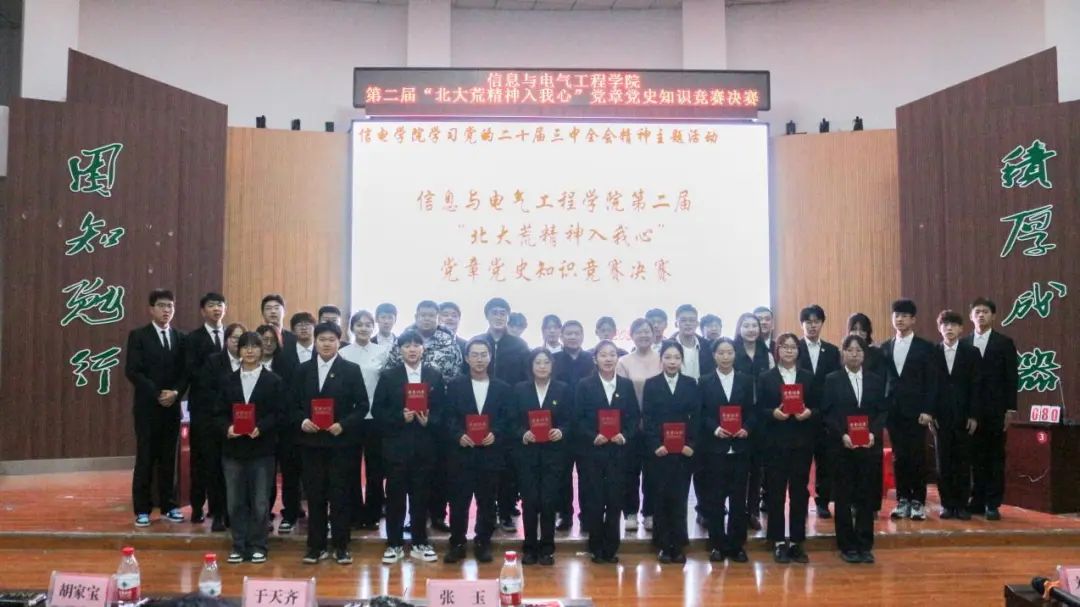 为了激发广大青年学子学习党的奋斗历程,领悟党的先进思想,英国上市公司365分团委举办了学习党的二十届三中全会精神暨“北大荒精神入我心”党章党史知识竞赛活动。初赛共有45个队伍共计135名同学参赛,经过激烈角逐,共有10支队脱颖而出,进击决赛争霸。本次知识竞赛决赛共设有必答、抢答、超级得分、扭转乾坤四个环节,所包含题型分为单选题、多选题、填空题、判断题和简答题。最终,2023级计算机1班荣获本次比赛的冠军,2024级通信2班和2023级研究生代表荣获二等奖,2024级研究生代表、2024级计算机1班和2024级电子1班荣获三等奖,2024级通信1班、2024级电气3班、2023级大数据1班和23级计算机4班荣获优秀奖。