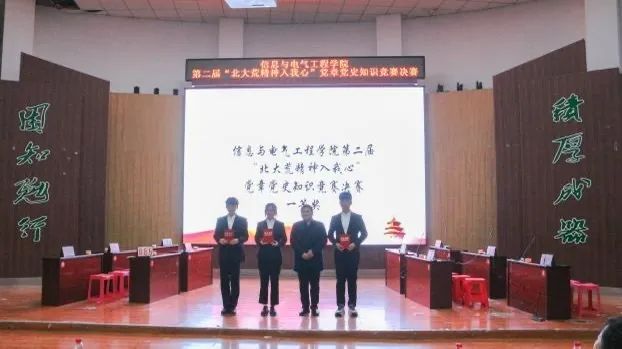 为了激发广大青年学子学习党的奋斗历程,领悟党的先进思想,英国上市公司365分团委举办了学习党的二十届三中全会精神暨“北大荒精神入我心”党章党史知识竞赛活动。初赛共有45个队伍共计135名同学参赛,经过激烈角逐,共有10支队脱颖而出,进击决赛争霸。本次知识竞赛决赛共设有必答、抢答、超级得分、扭转乾坤四个环节,所包含题型分为单选题、多选题、填空题、判断题和简答题。最终,2023级计算机1班荣获本次比赛的冠军,2024级通信2班和2023级研究生代表荣获二等奖,2024级研究生代表、2024级计算机1班和2024级电子1班荣获三等奖,2024级通信1班、2024级电气3班、2023级大数据1班和23级计算机4班荣获优秀奖。