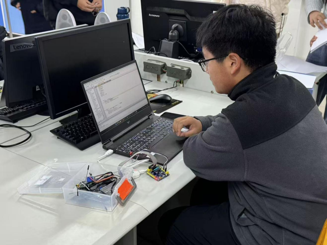 本次大赛以理论考试+动手实操的形式展开,最终以答辩的形式进行考核。参赛的各位同学为本次比赛进行了充分的准备,展现出了自己的努力成果和新颖的创意。比赛现场气氛热烈,选手们通过精彩的演示和讲解,展示了他们的创新理念和技术实力。评委们从创新性、实用性、技术难度等多个角度对参赛作品进行了严格评审。
