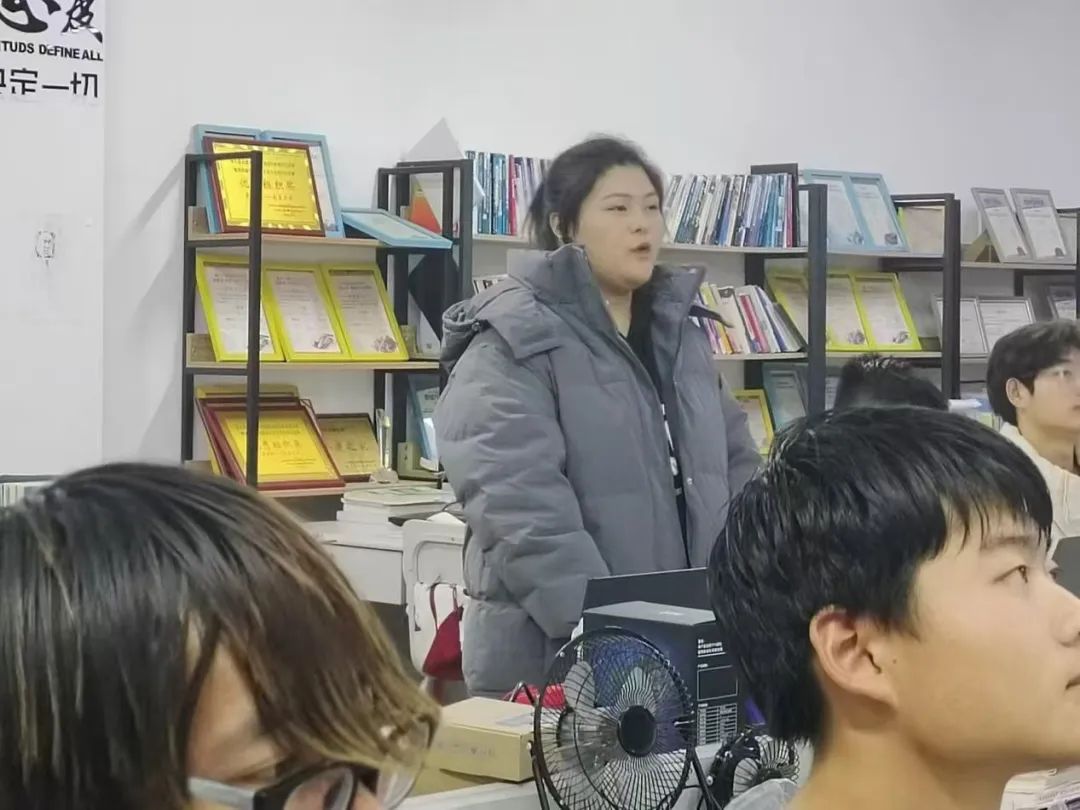 在科创经验分享之后,两位党员同志面向协会的积极分子和共青团员们进行了党的二十届三中全会精神学习心得分享。李海霞就“完善员工实践实习制度”这一点进行了着重分享,呼吁协会成员多实习、多实践,锤炼过硬本领,增强择业核心竞争力;高志帅就“健全因地制宜发展新质生产力体制机制”的学习心得进行了汇报,并着重宣讲了“新质生产力”的相关理论。