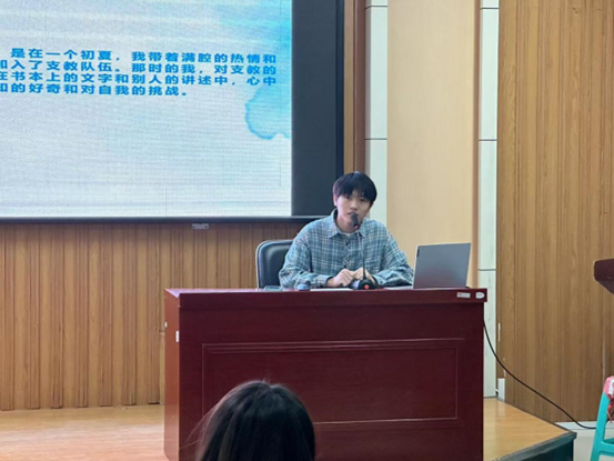 分享环节中,于勇同学结合自身经历,讲述了志愿服务中的感人故事与深刻感悟。他详细介绍了支教活动的策划与执行过程,强调根据孩子们需求提供精准帮助的重要性。现场观众聚精会神,被于勇学长的分享深深吸引。他们因故事中的温情而面露微笑,为支教中的困难而微微皱眉,被学长的奉献精神所感染,对志愿公益活动也有了更深刻的理解与向往。