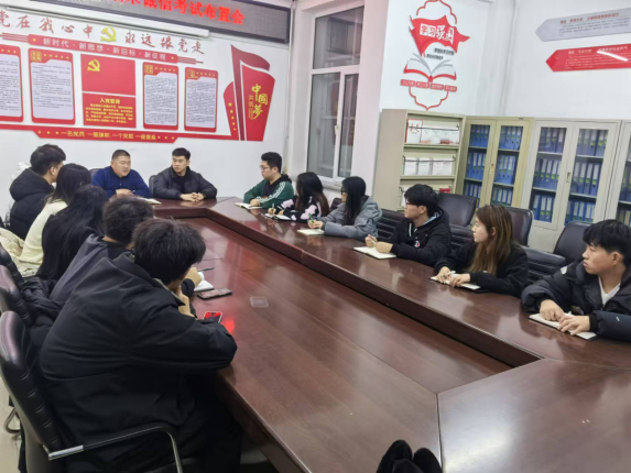 布置会的最后,刘传明向各位员工骨干提出要求:通过多种渠道向班级同学强调诚信考试的重要性,助力学院营造优良的考风考纪。员工骨干发现存在违纪倾向的同学及时提醒制止,时刻关注同学们考试后心理变化动态,发现问题及时向辅导员汇报。