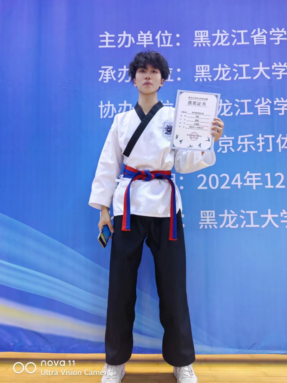 12月8日,2024年黑龙江省第四届老员工跆拳道锦标赛在黑龙江大学体育馆成功举办,信电学院于淏旭、张凯尧随校跆拳道队出征斩获佳绩。
