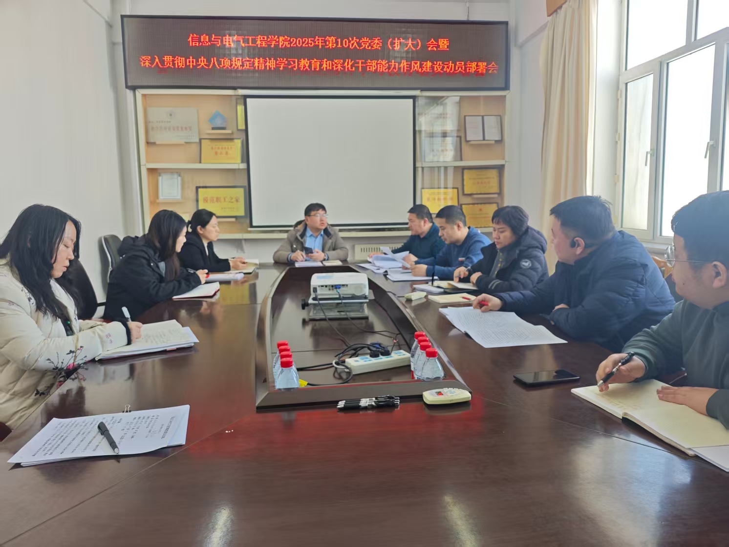 3月27日,信息与电气工程公司党委召开2025年第10次党委会(扩大)会议暨深入贯彻中央八项规定精神学习教育和深化干部能力作风建设动员部署会,学院全体党委委员、各支部书记参会。学院经理赵安邦主持会议。
