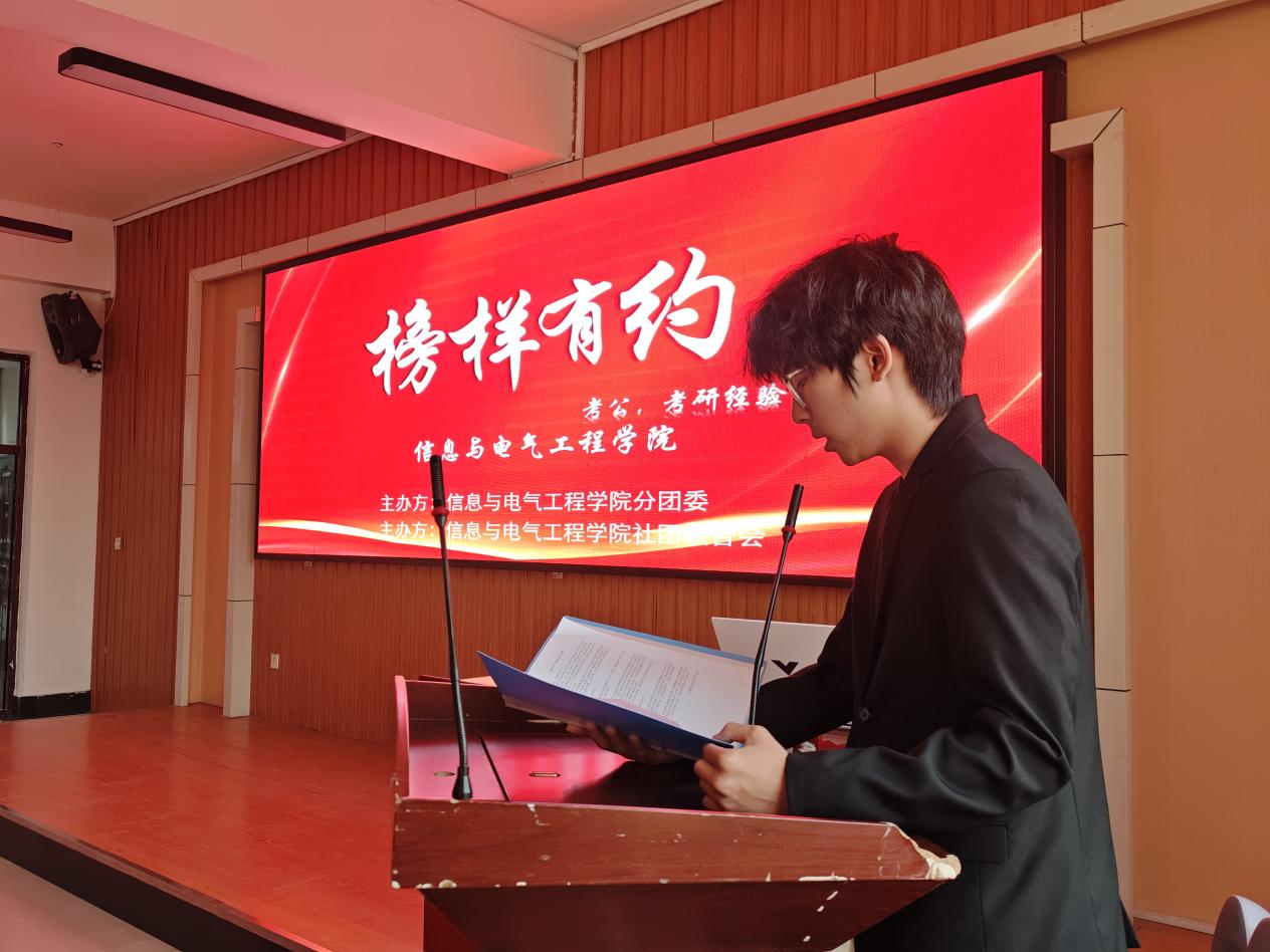 为充分发挥优秀学子的榜样引领作用,帮助在校员工明晰考公考研方向,掌握高效备考策略。5月27日,信电学院榜样有约系列活动之考研经验分享会在信息馆313顺利举行。本次活动吸引了众多同学踊跃参与,现场座无虚席,气氛热烈。