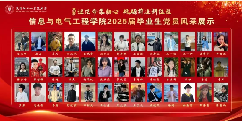 在2025届毕业生党员即将携梦远航之际,全体毕业生党员以初心为帆,使命为舵,以理想为灯照亮前行之路,用担当书写时代答卷,将青春奋斗融入党和人民事业。期待全体毕业生党员在新征程上传承红色基因,凝聚奋进力量,让青春在实现中华民族伟大复兴的火热实践中绽放绚丽之花!
