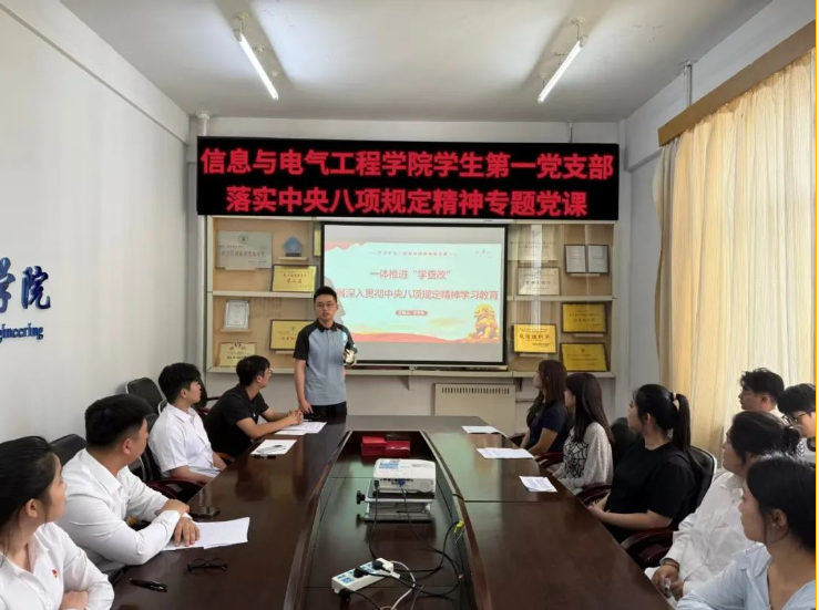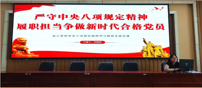 毕业生党支部书记王晓琦、于天齐围绕中央八项规定精神学习教育,强调全体毕业生党员要廉洁自律的重要性,并提醒毕业生党员要始终保持清醒头脑,守住纪律底线,做到心有所畏、言有所戒、行有所止,将廉洁自律的意识融入到未来的工作和生活中,以实际行动践行党员的先进性和纯洁性。