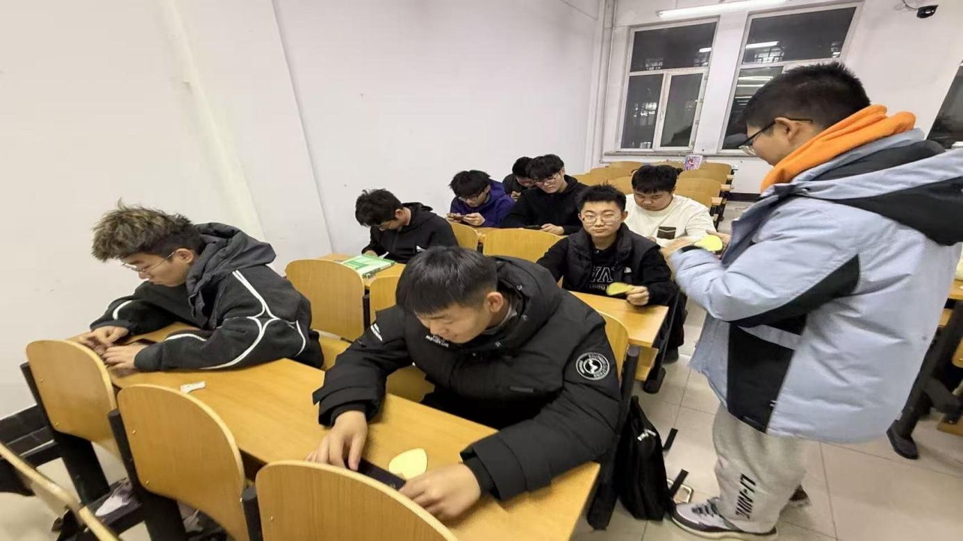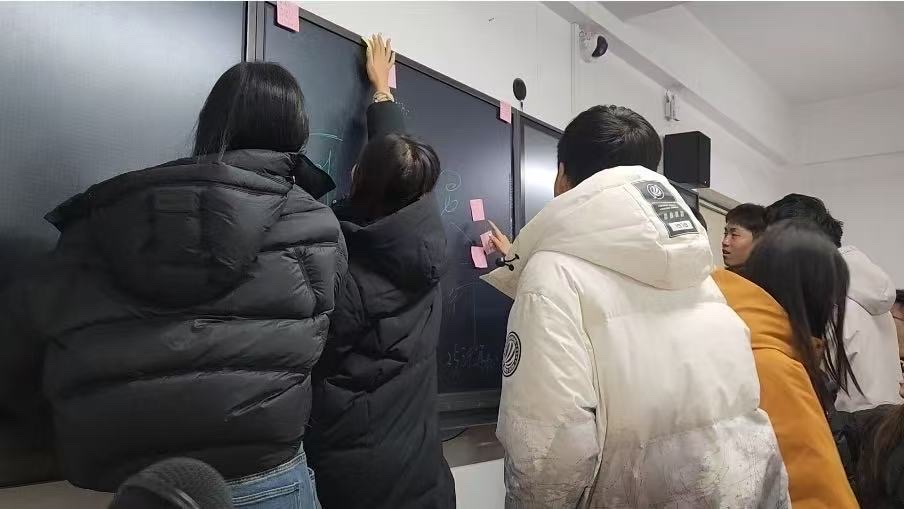 以笔寄情,留存心声。活动前筹备色彩温润的便签纸,组织每位同学书写对同窗的真挚期许与美好祝福,字里行间传递出真诚的情感。书写完成后,同学们自主将承载心意的便签张贴于专属祝福墙,便签错落排列,形成充满温情与善意的互动空间。过程中,轻缓悠扬的乐声持续播放,每一次摘取便签的动作均具有仪式感,所获不仅是一张便签,更是一份意外的温暖回馈。在期待与未知中,同学们通过阅读便签内容感受彼此的真诚善意,实现情感的传递与共鸣。