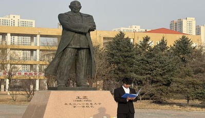 宣讲结束后,全体同学依次有序上前瞻仰将军雕像、敬献鲜花,用最真挚的情感缅怀将军的丰功伟绩,牢记“困知勉行,积厚成器”的校训,在学习中刻苦钻研,在实践中锤炼本领,以青春之我、奋斗之我,为强国建设、民族复兴贡献青春力量,让革命精神在新时代绽放新的光芒。